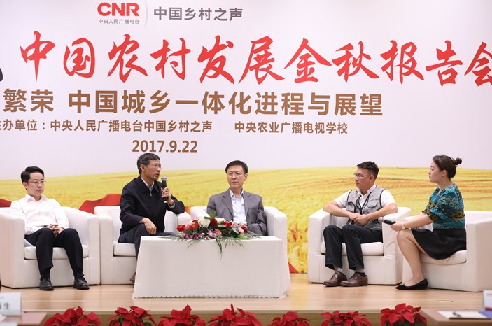 9月22日上午,由中央人民广播电台中国乡村之声与中央农业广播电视学校联合举办的“大国基础——中国农村发展金秋报告会”在北京举行。今年报告会的主题为“共享繁荣 中国城乡一体化进程与展望”。中国农业大学原校长、清华大学指导委员会委员柯炳生,中国社会科学院农村发展研究所所长魏后凯,清华大学中国农村研究院副院长王亚华发表主旨演讲,并与来自基层农村的中国乡村之声农民观察员以及中央农业广播电视学校学员,共同探讨中国城乡一体化发展之路。