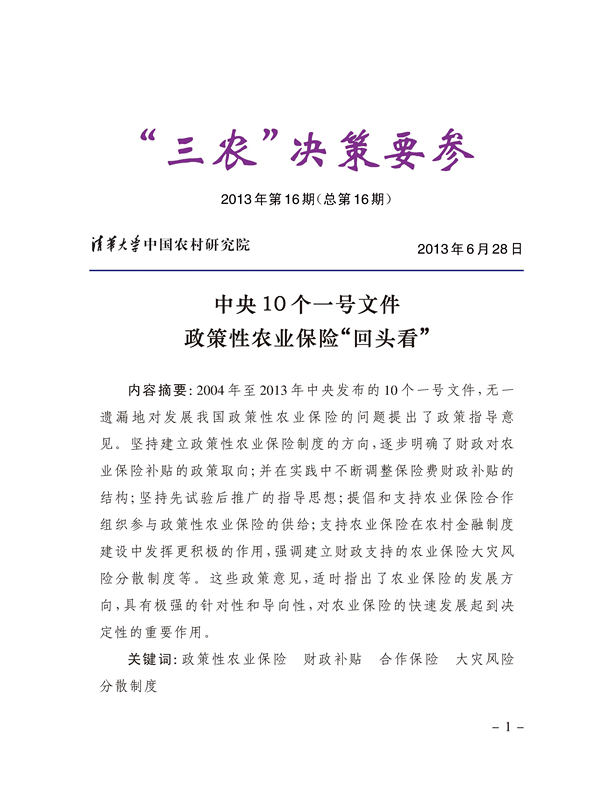 第16期:中央10个一号文件政策性农业保险“回头看”