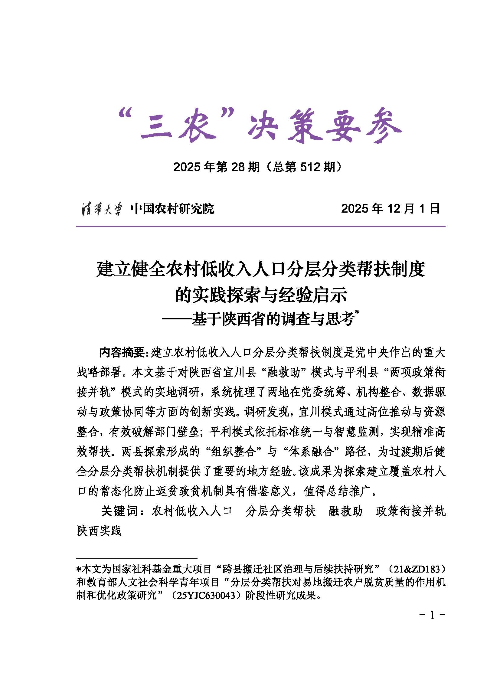 第512期:建立健全农村低收入人口分层分类帮扶制度的实践探索与经验启示——基于陕西省的调查与思考