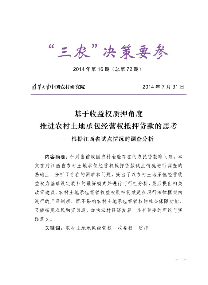 第72期:基于收益权质押角度推进农村土地承包经营权抵押贷款的思考
